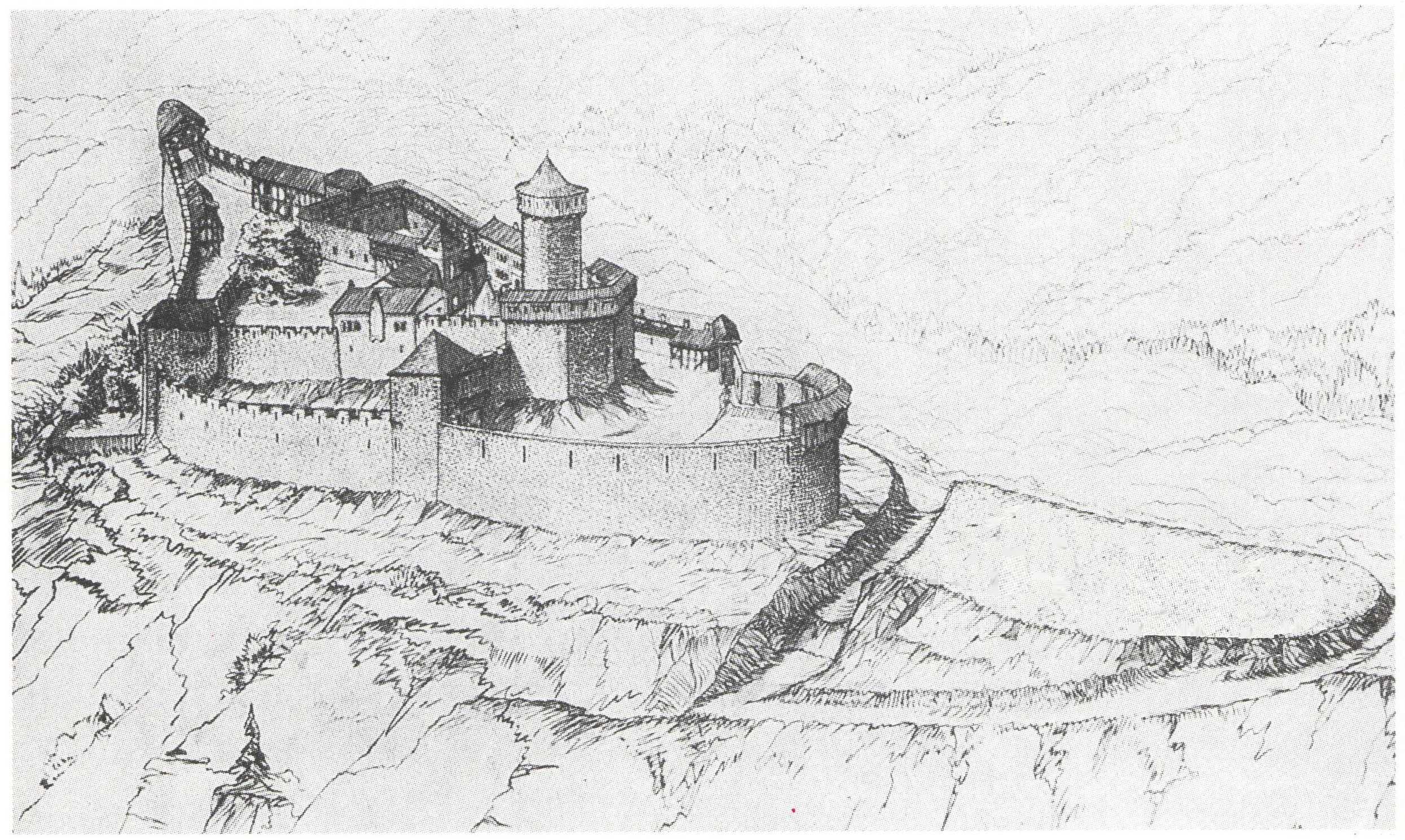 Federzeichnung, welche die Kieselburg darstellt stammt, nach ein paar